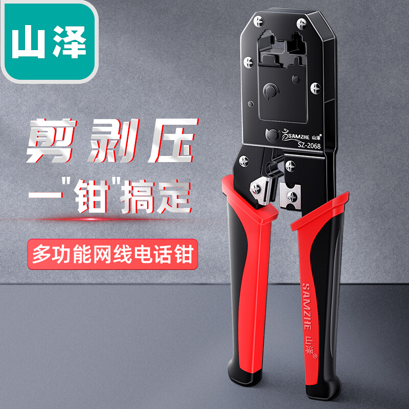 山泽(SAMZHE)网线钳网络电话水晶头压线钳省力棘轮弹簧设计双用压剥剪钳电脑网线电话线压接工具SZ-2068颜色随机 自营